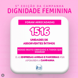 DIGNIDADE FEMININA: Com imensa gratidão, anunciamos o encerramento da 5ª Edição da Campanha Dignidade Feminina, promovida pelo Instituto CAMPB. Ao longo dessa mobilização, reforçamos nosso compromisso no combate à pobreza menstrual e na promoção de mais dignidade para mulheres e meninas.
